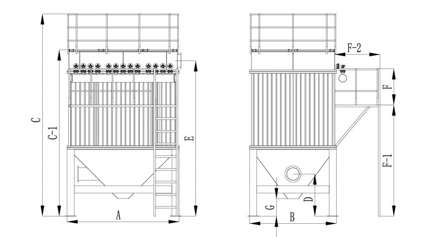 Remarque : En raison des contraintes du site ou des limitations de transport, le nombre de trémies de cendres dans les dépoussiéreurs à manches à jet pulsé peut varier, allant d'une à plusieurs unités.